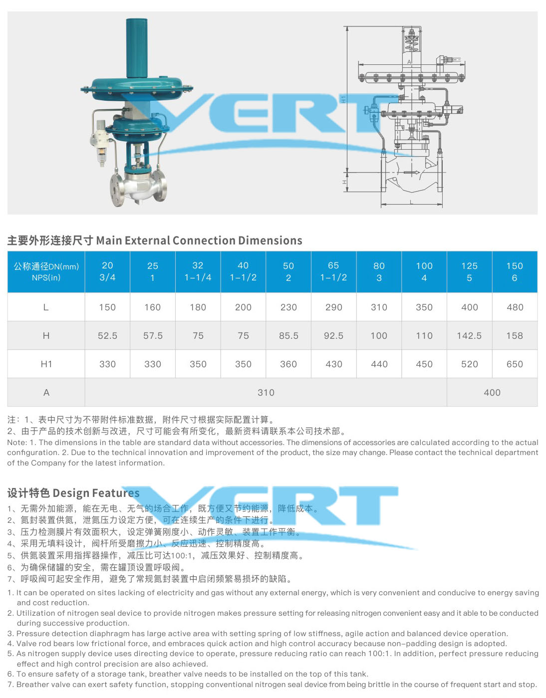 Serial self-operated nitrogen seal regulating valve of the company is mainly composed of several parts including actuated valve, actuator, director and pressure spring.It is utilized to maintain constant pressure of protective gas(generally nitrogen) on the top of containers for avoiding direct contacts of containers and materials, preventing materials from vol at il izing and being oxidized and ensuring containers safeties.It applies to air seal protection systems of all kinds of large-scaled storage tank.